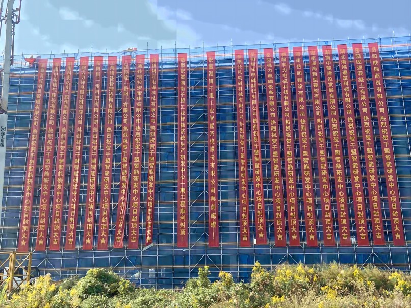10月20日上午10:18,湖南千盟工業智能系統股份有限公司生產研發中心一期工程項目封頂儀式隆重舉行!